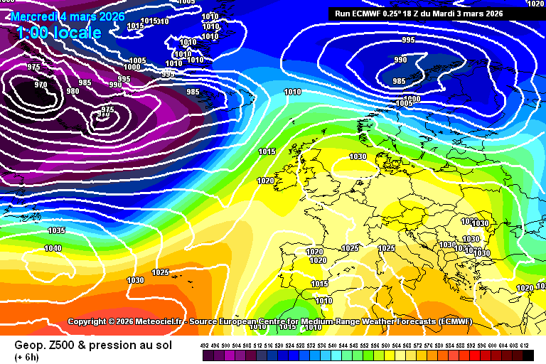 Ces cartes présentent les données du modèle européen CEP/ECMWF (avec abonnement payant pour distribution vers nos serveurs). Elles sont réactualisées à partir de 6h15, 12h15, 18h15 et 0h15, en mode rapide soit 30 à 45 minutes avant la sortie des cartes habituelles.